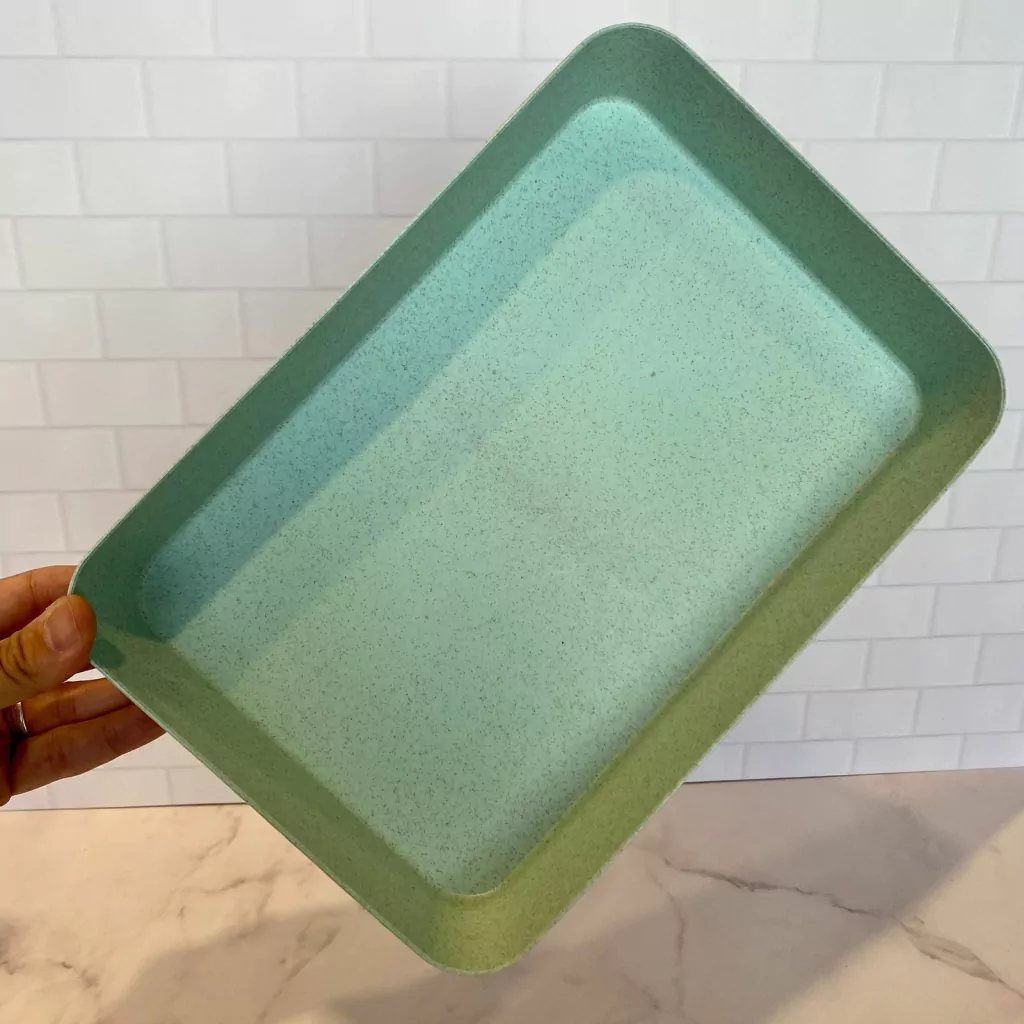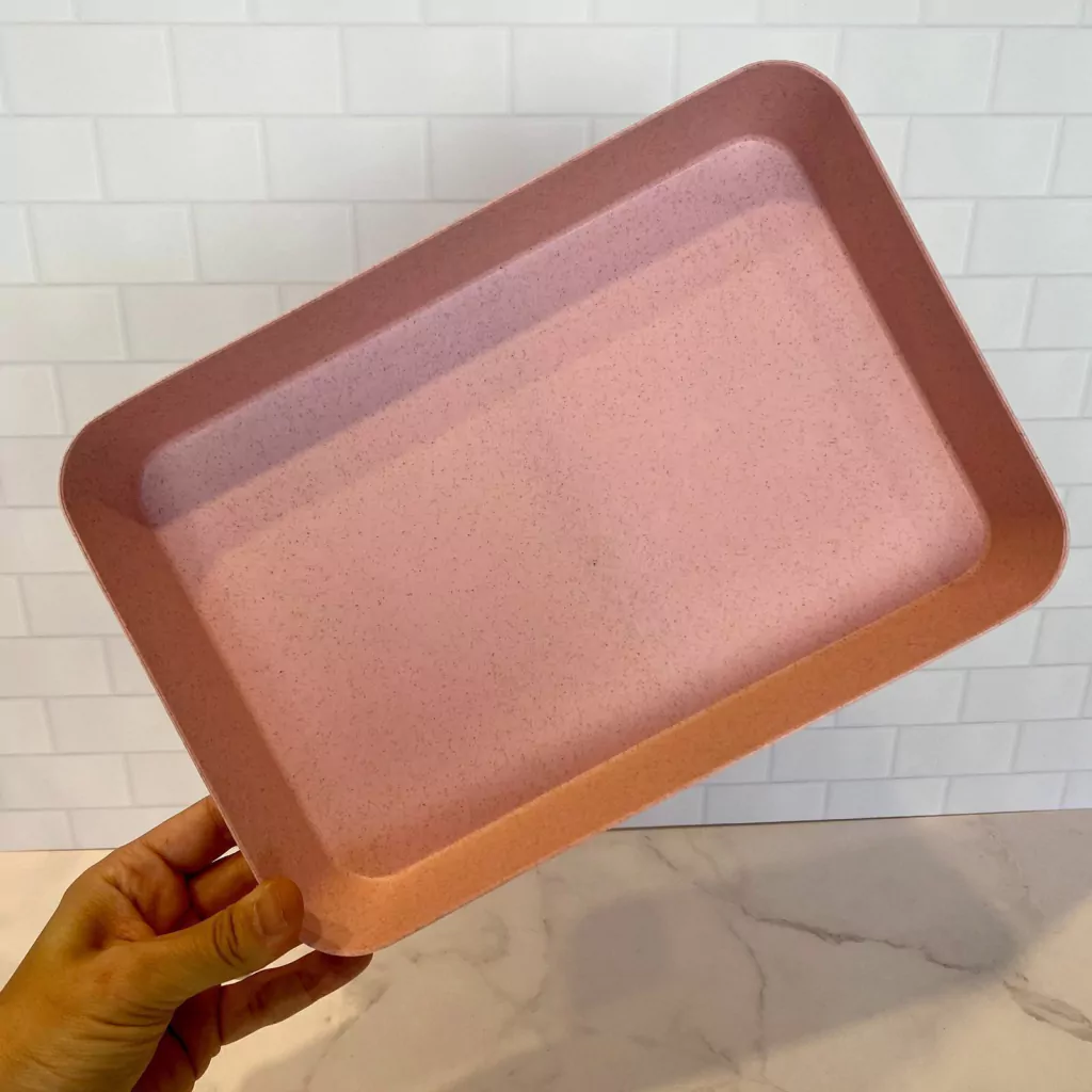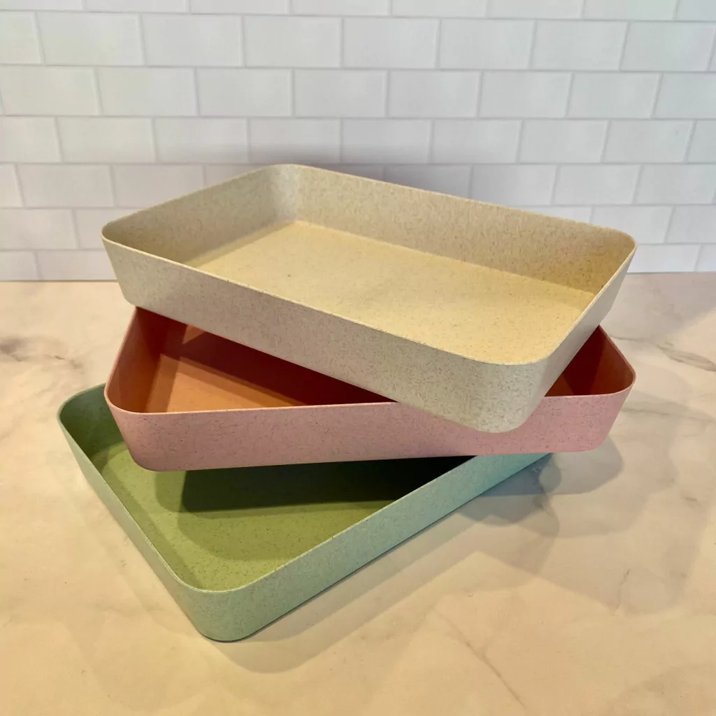 Bandeja de fibra de trigo con profundidad. Para desayunos, para organizar en heladeras, alacenas, para frutas. Medidas: 26cm x 18,5cm x 4cm alto