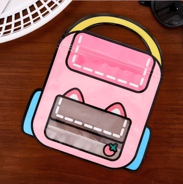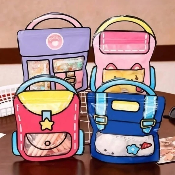 Bolsita con cierre hermético tipo "zipper" con diseño de mochila.Medidas: 21cm largo x 18cm de ancho aprox
