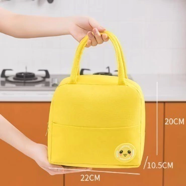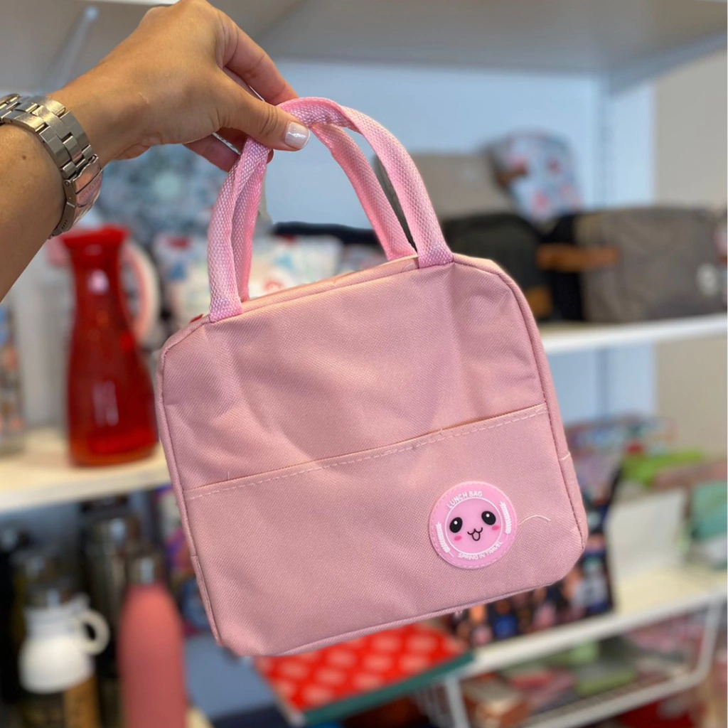 Bolso térmico con manijitas y bolsillo en la parte frontal.