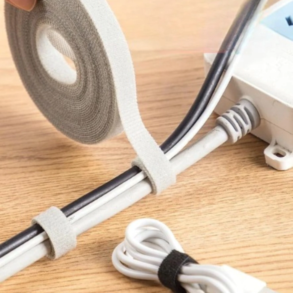 Cinta con abrojo, ideal para organizar cables, facil de usar. Color BLANCO