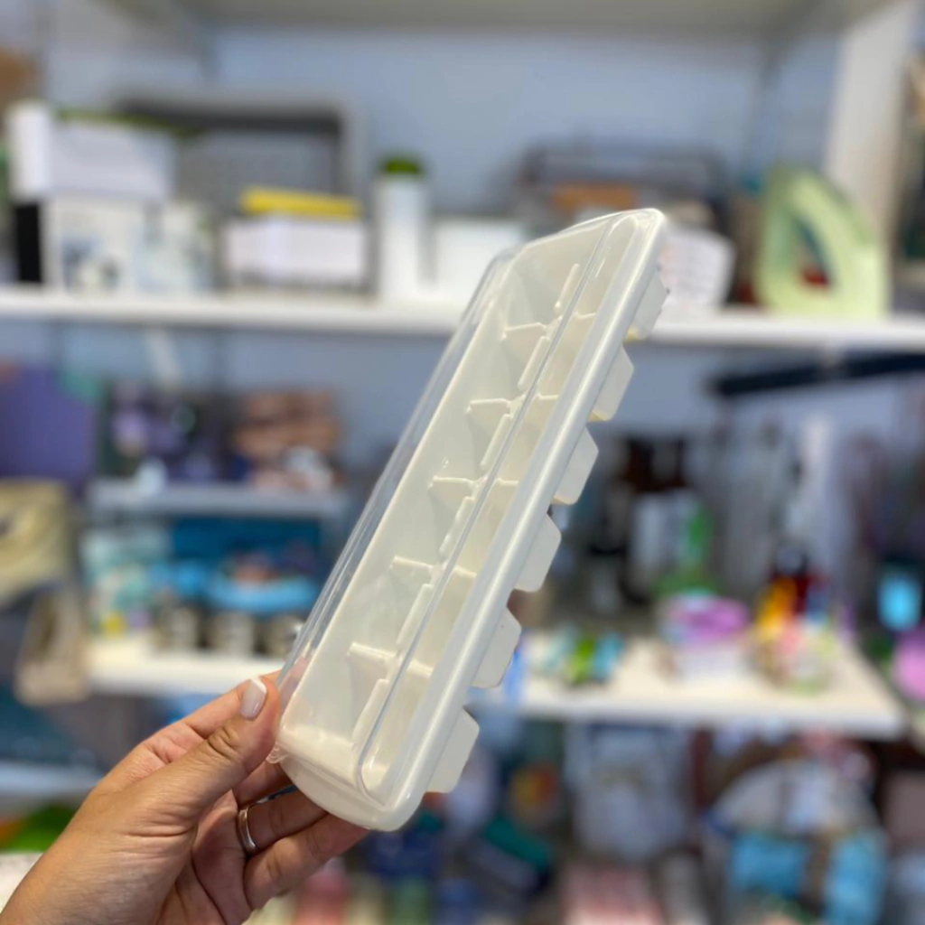 Cubetera de plástico con capacidad para 12 hielos.Medidas: 8.5cm de ancho x 25cm de largo x 3cm de alto