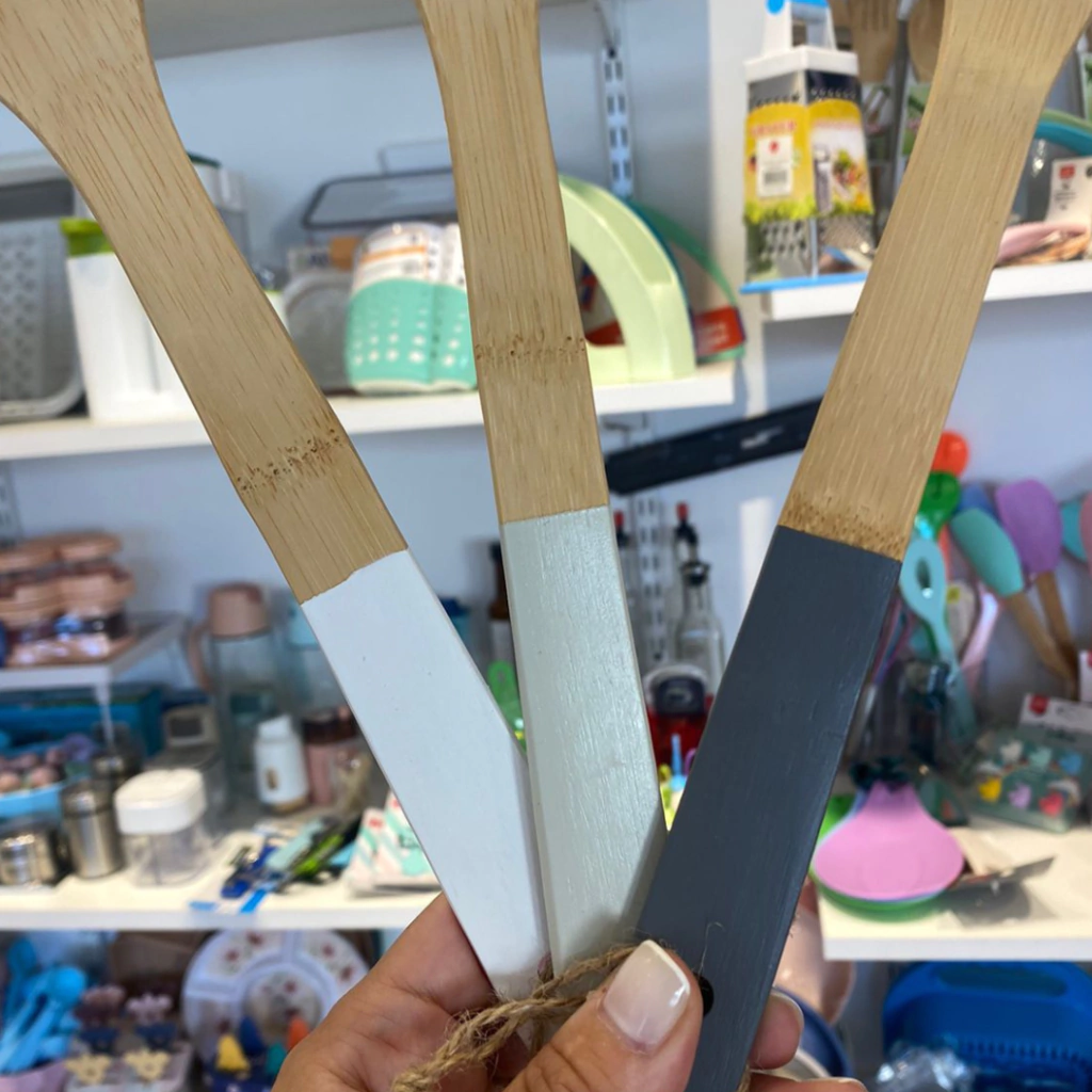 Cuchara de madera con mango pintado.