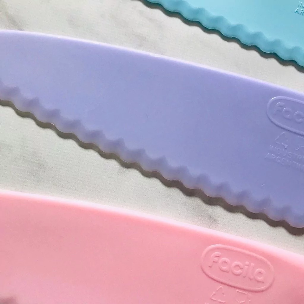 Cuchillo de plástico de alta resistencia en tonos pastel ideal para tortas, para quesos, y hasta para evitar que se oxiden las verduras al cortarlas como con cuchillos tradicionales.
