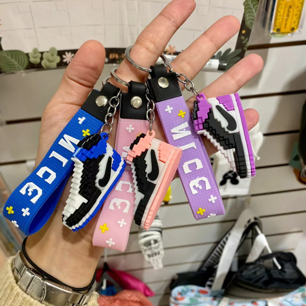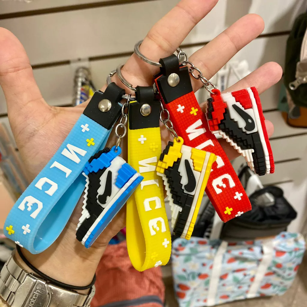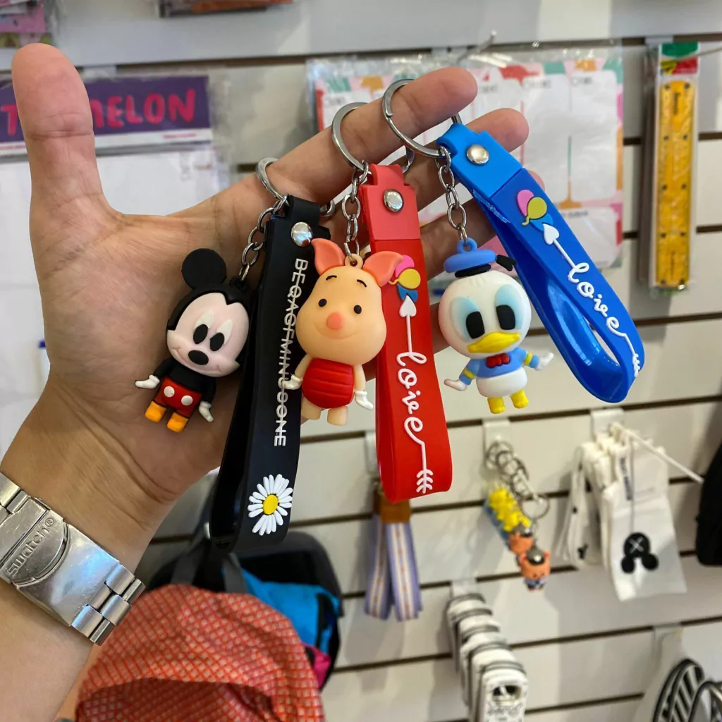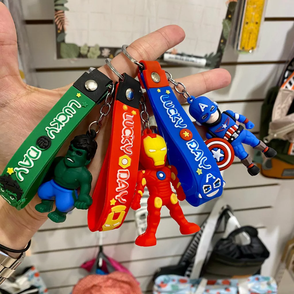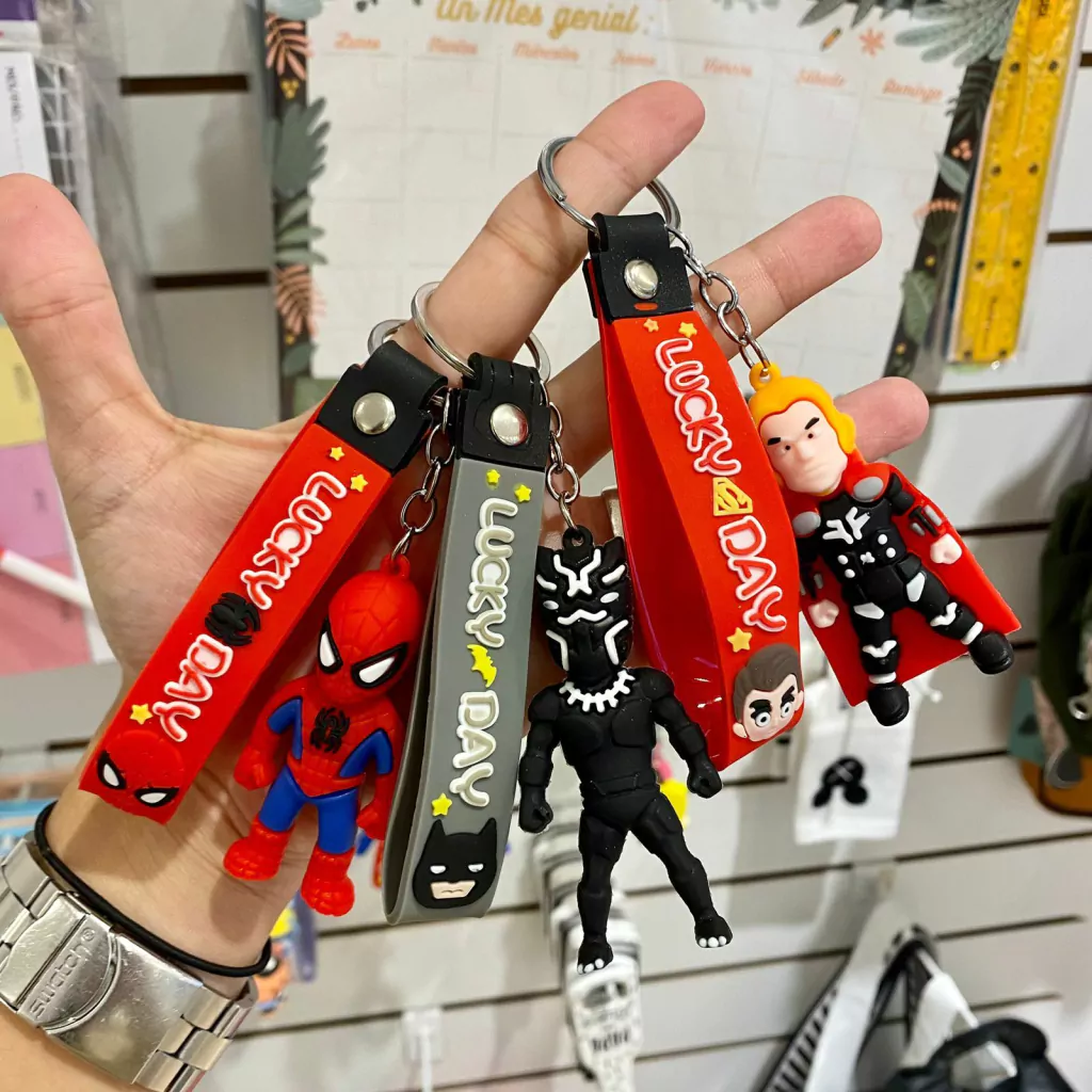 Llaveros de silicona con diseño de personajes y correita de agarre extra.