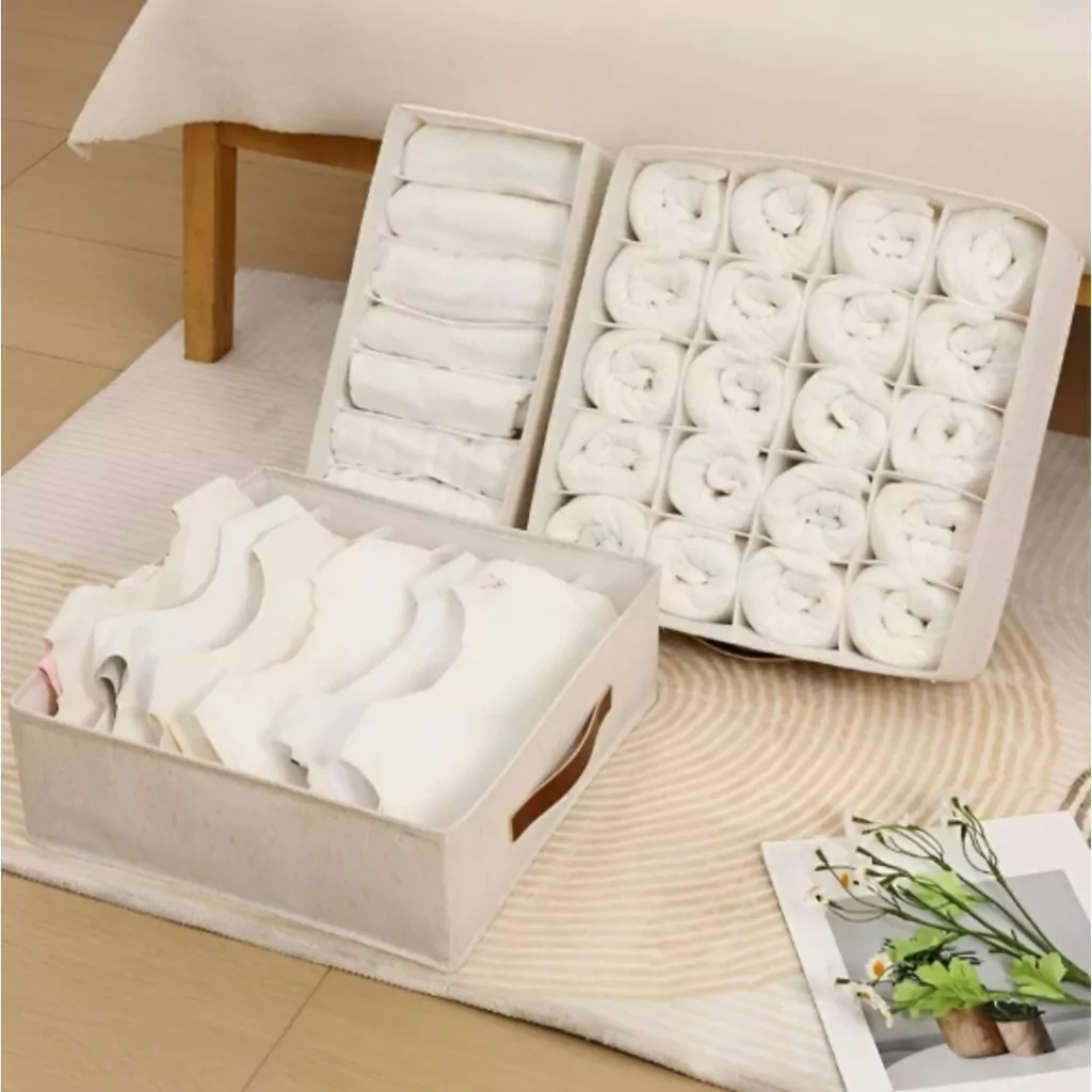Contenedor de tela plegable con 20 divisiones y manija. Lo podes utilizar para ordenar medias, ropa interior, corpiños deportivos, etc. Material anti moho, resistente a la humedad y duradero. (Código 73)