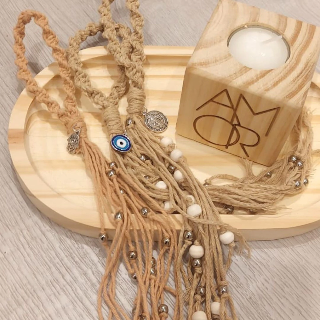 Protectores del hogar confeccionados en hilo. Podes colgarlos en picaportes, barrales, tenerlos en una canastita en algun lugar de tu casa, o donde mas te guste. San benito - Ojo turco - Mano de Fátima