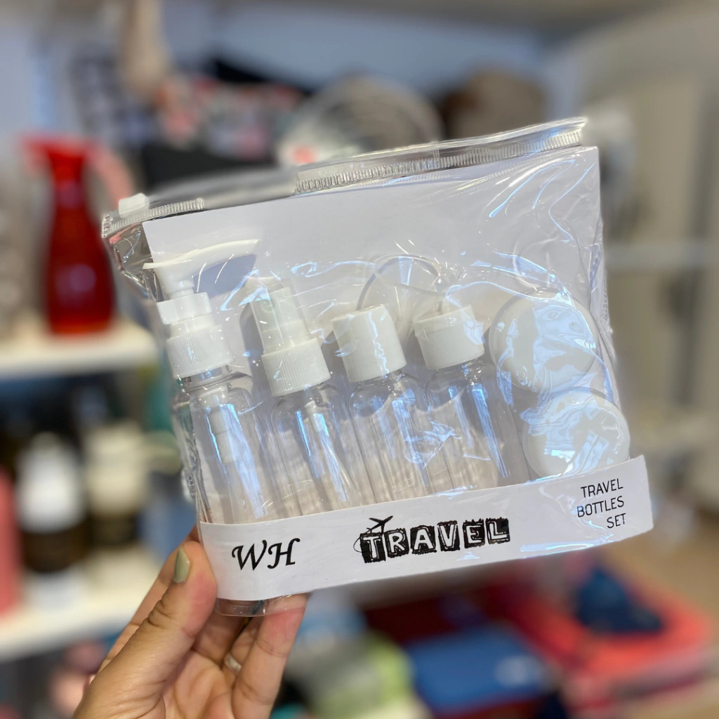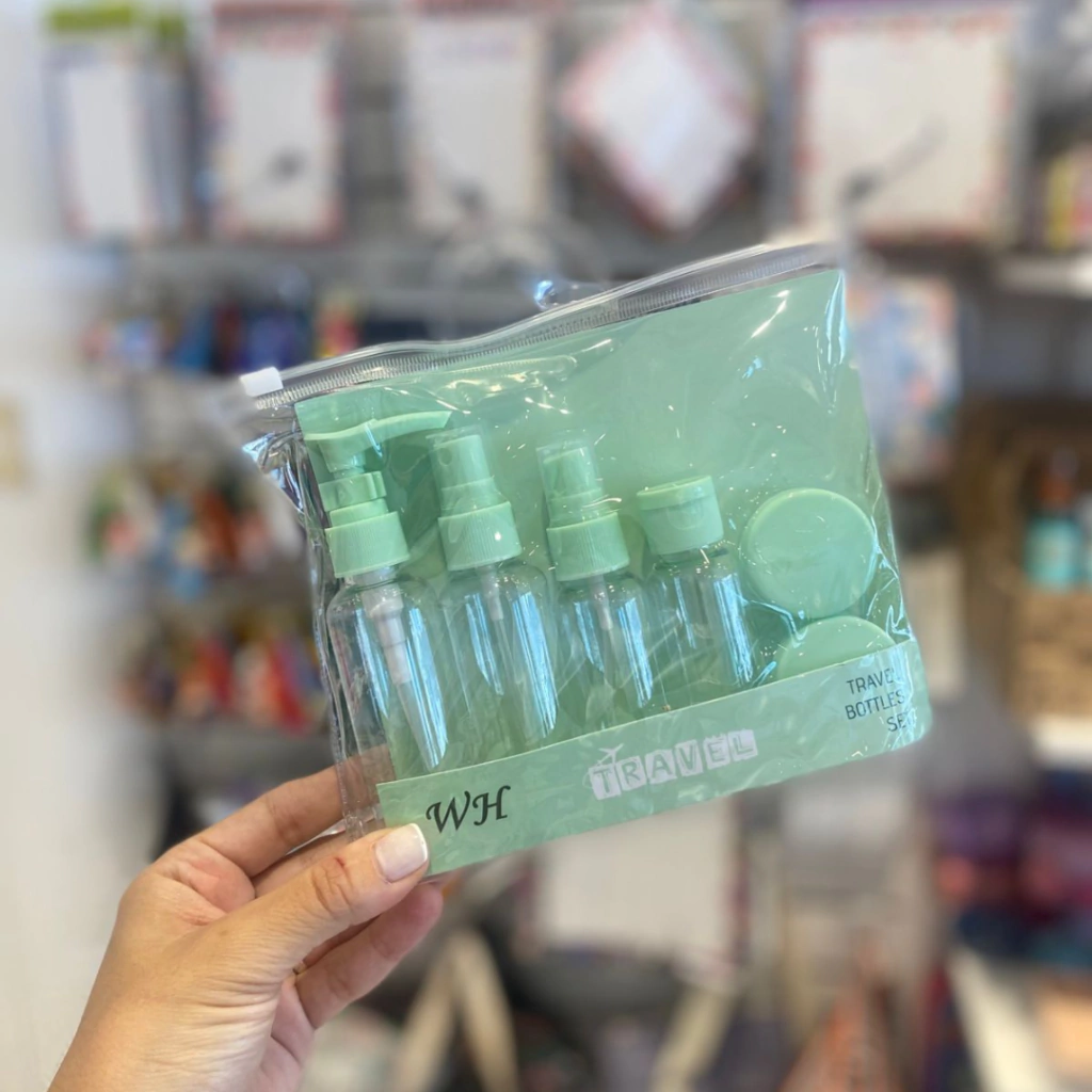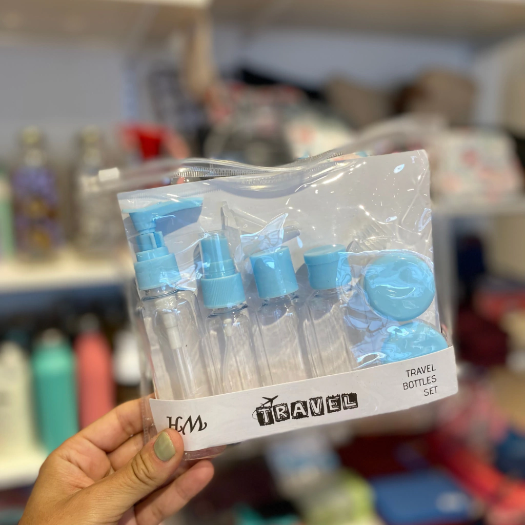 Set de viaje, con el tamaño (medidas) que permiten subir al avión.